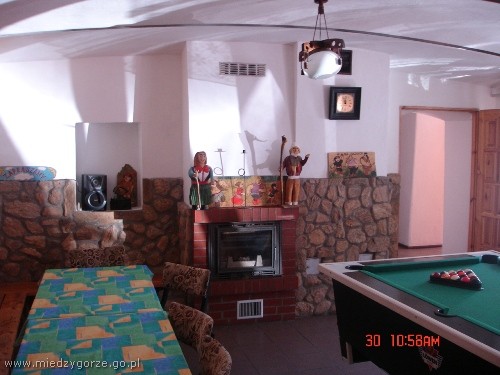 W naszej agorturystyce proponujemy Państwu: pokoje 2,3,4,5 i 6-cio osobowe w cenie 25-35zł od osoby, razem 34 miejsca, łącznie 9 pokoi z łazienkami, TV oraz radiem, 2 aneksy kuchenne z pełnym wyposażeniem w lodówki, kuchenki, naczynia, itp., świetlicę wraz z kominkiem, wyposażoną w TV, wieżę oraz stół bilardowy.
