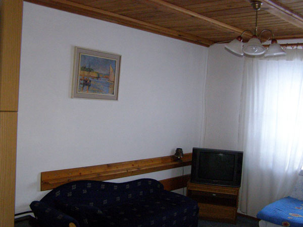 34 miejsca noclegowe, łącznie 9 pokoi 2,3,4,5 i 6-cio os. z łazienkami, TV oraz radiem.